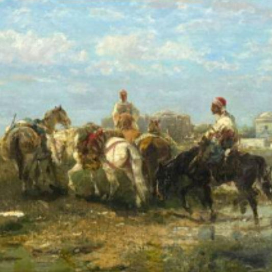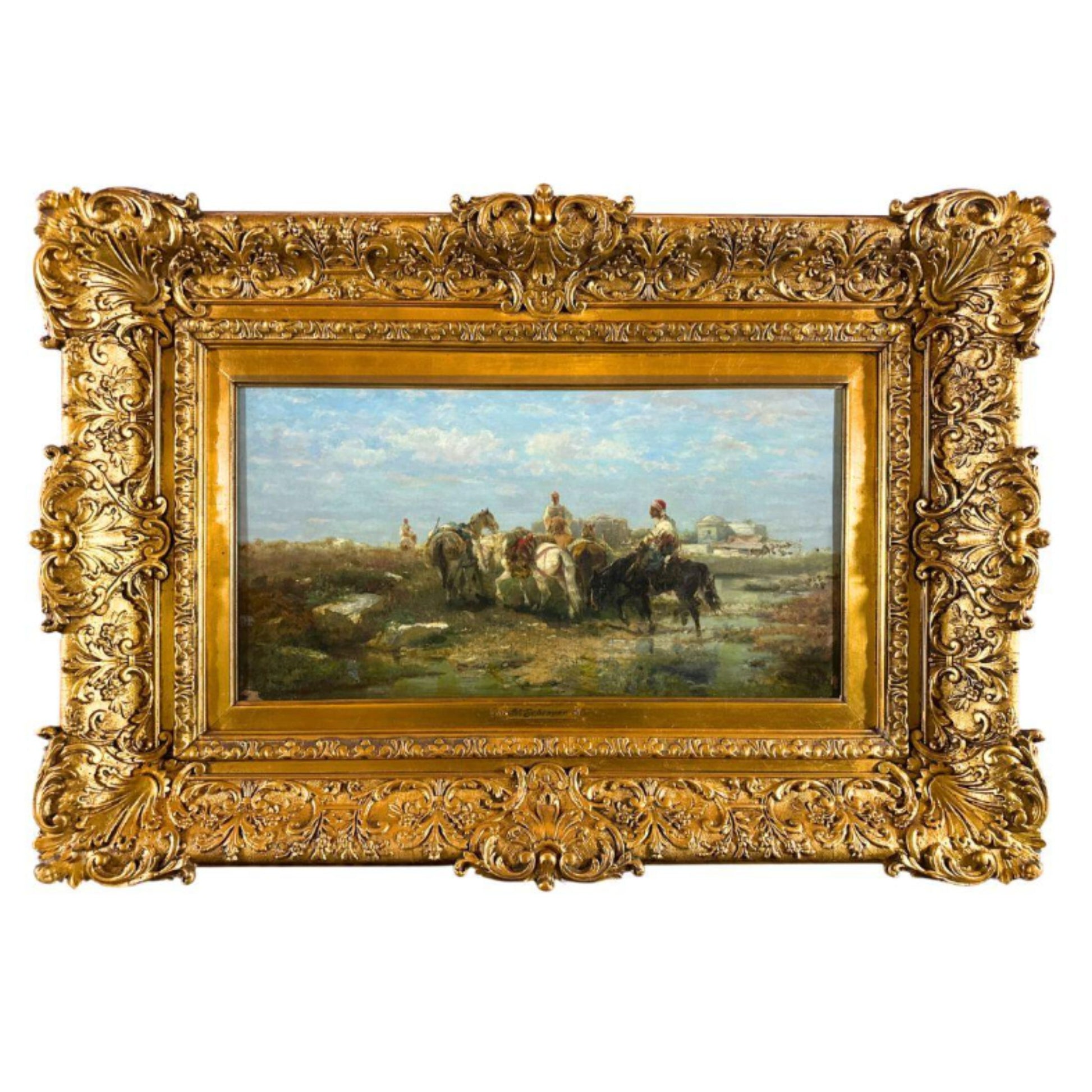 Adolf Schreyer (1828–1899) was a German painter celebrated for his dramatic equestrian scenes and vivid depictions of life in Eastern Europe and the Middle East. Trained in Frankfurt and Düsseldorf, Schreyer traveled extensively through Hungary, Romania, Egypt, and Algeria—experiences that deeply informed the authenticity of his work. His paintings were especially admired in France and America during his lifetime and remain highly collectible today.