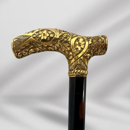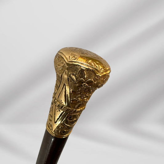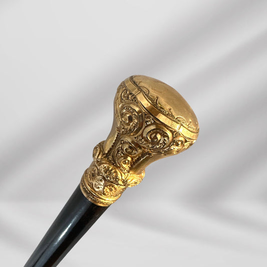 Antique Handmade Gold-Plated Walking Stick. 1800s Designer Cane for Men, Vintage Gentleman’s Accessory