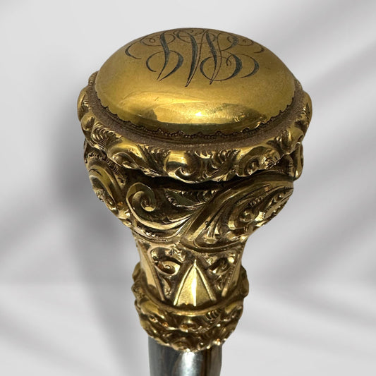 Antique Handmade Gold-Plated Walking Stick for Women. Designer Cane, Made in Boston, Massachusetts, 1800s