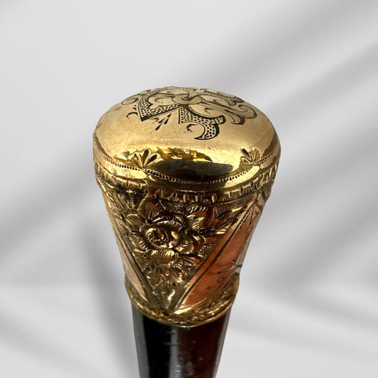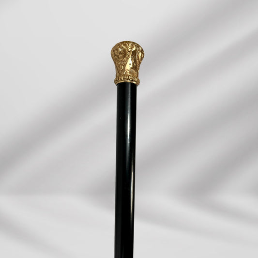 Antique Carved Gold Plate Knob Handle Walking Stick Cane Black