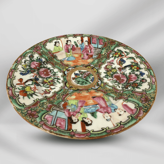 Antique Embossed Art Hand Painting Rose Medallion Chinese Porcelain Plate
