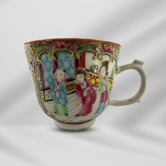Antique Art Hand Painting Rose Medallion Chinese Porcelain Coffee Tea Cup