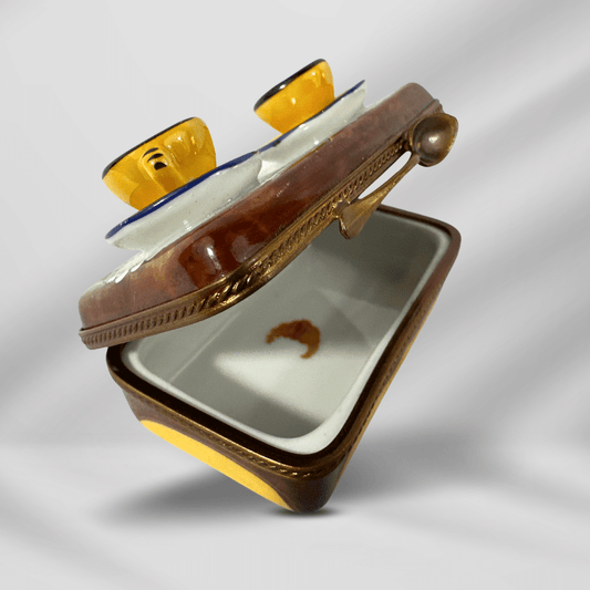LIMOGES France Picnic Basket Peint Main MARQUE DEPOSEE Hinged Trinket Box