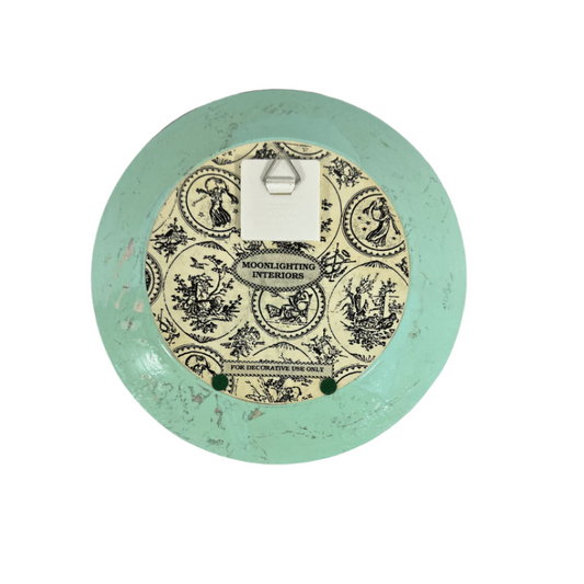 Vintage Reverse-Painted Turquoise Glass Plate – Floral Design, 9”