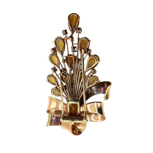 Antique French 18K Gold Brooch with Citrine, Sapphire, and Diamond Floral Motif