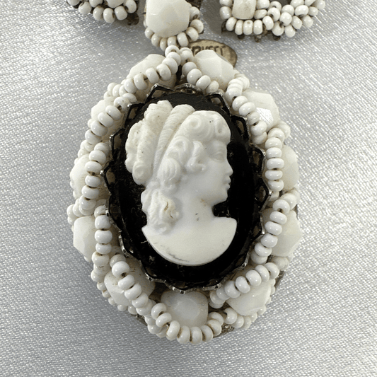 Signed Miriam Haskell Black & White Cameo Locket Brooch – Vintage Elegance