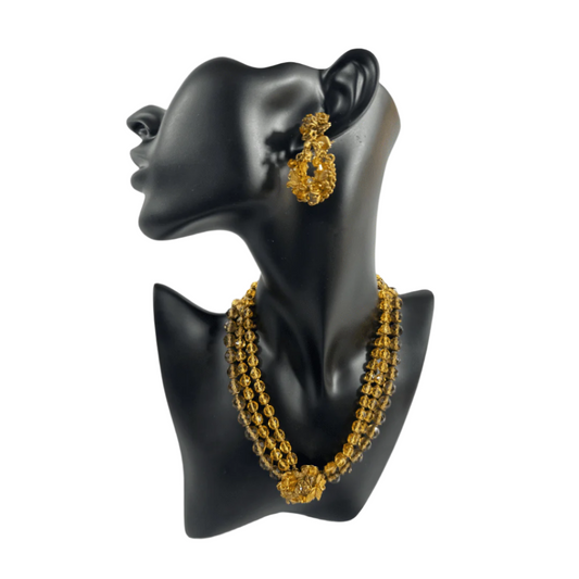 Vintage 1950s DeMario Champagne Lucite Necklace & Earrings Set – Retro Glamour Parure
