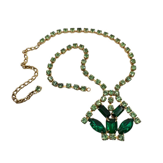 Vintage Green Glass & Rhinestone Jewelry Set – Necklace & Bracelet
