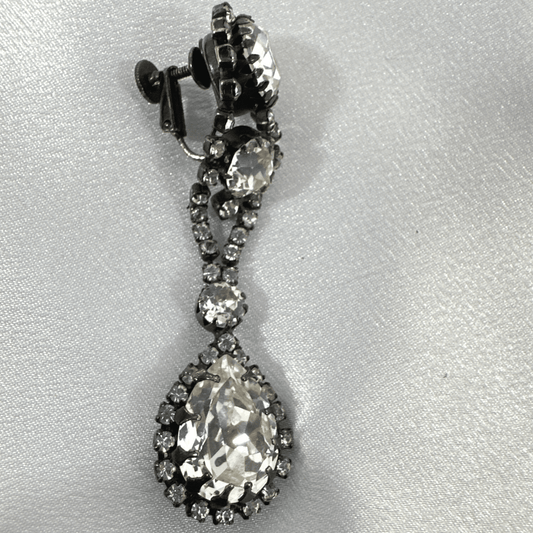 Drop Earrings with Ornate Japanned Clear Rhinestone