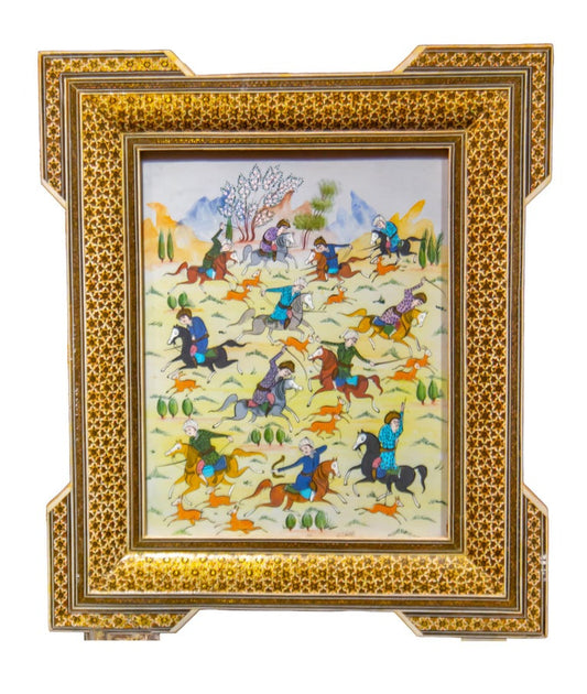 Vintage Miniature Persian Painting of Hunters on Horseback