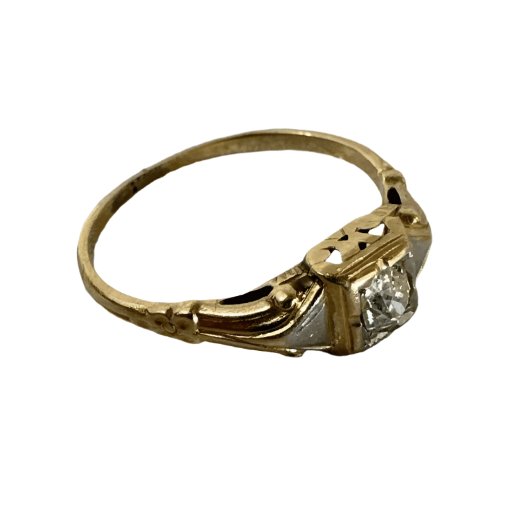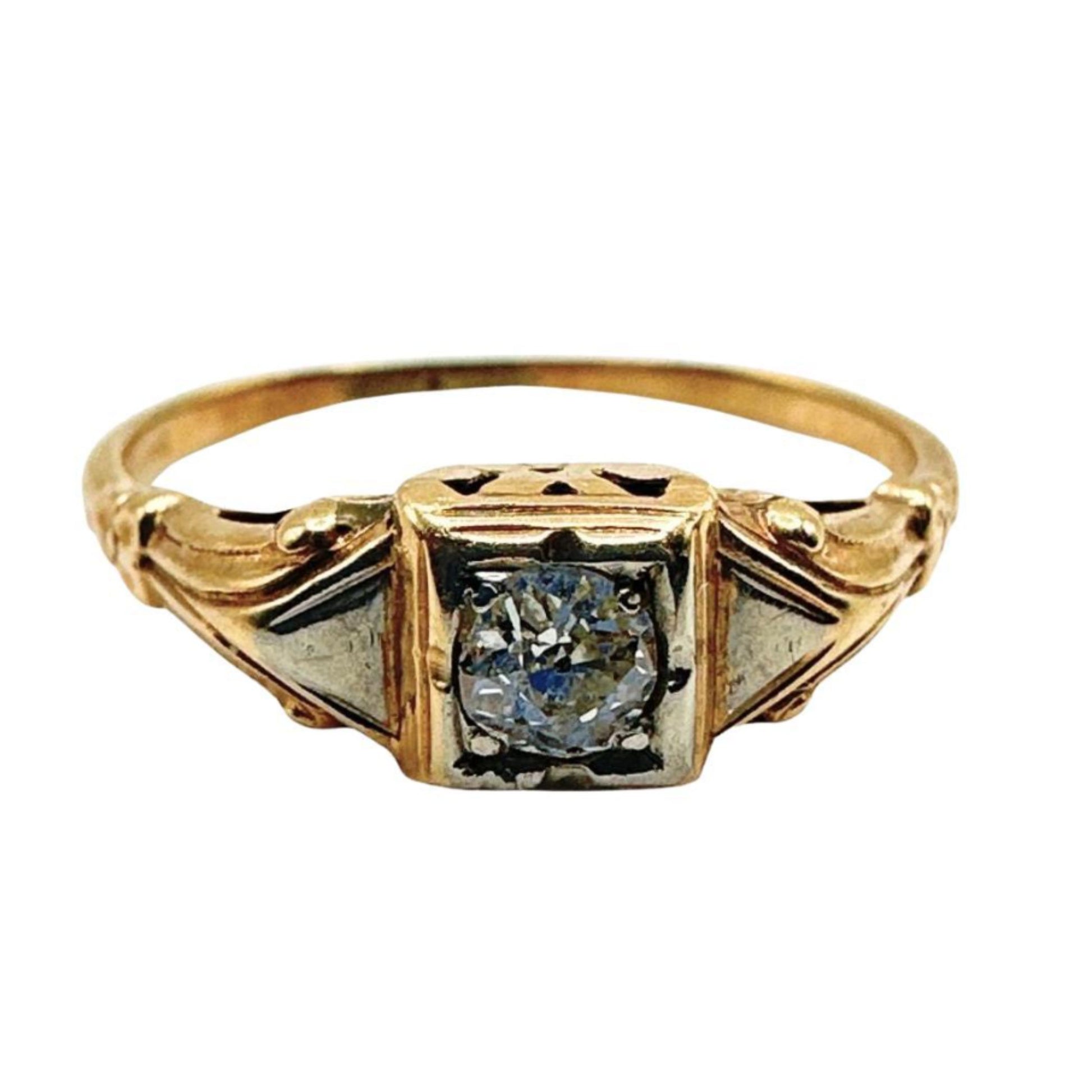 14K Yellow Gold 19th Century Victorian Brilliant Cut Diamond Ring (Size 6.25)