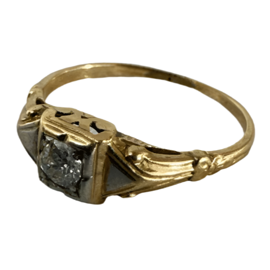 This exquisite 19th-century Victorian ring captures the elegance and romance of a bygone era. Crafted in warm 14K yellow gold, the setting gracefully cradles a brilliant-cut diamond, its facets expertly shaped to maximize light and fire. The delicate yet intricate goldwork reflects the masterful craftsmanship of the Victorian period, where sentimentality and sophistication were seamlessly intertwined.