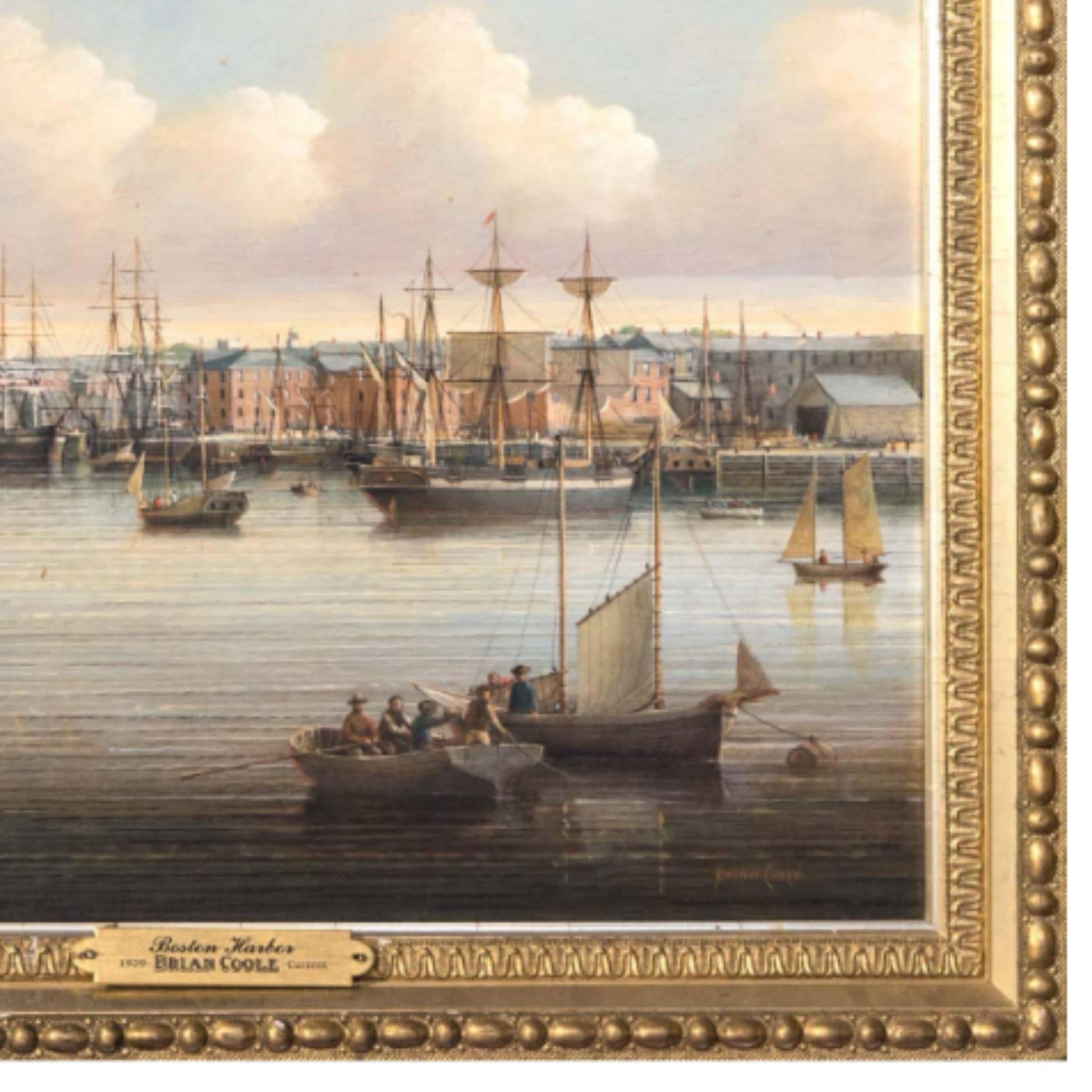This piece exemplifies Brian Coole’s dedication to historical realism, drawing from the traditions of 19th-century maritime painters while infusing his own meticulous craftsmanship. As a contemporary artist working in a classical style, Coole preserves the legacy of maritime art, ensuring that the rich history of ports like Boston remains visually and culturally significant. Boston Harbor stands as a testament to his skill in capturing both the elegance and the industrious energy of seafaring life. For collectors of maritime and historical art, this painting represents not only a beautifully composed work but also a bridge to the past, celebrating an age of exploration, commerce, and naval prowess.