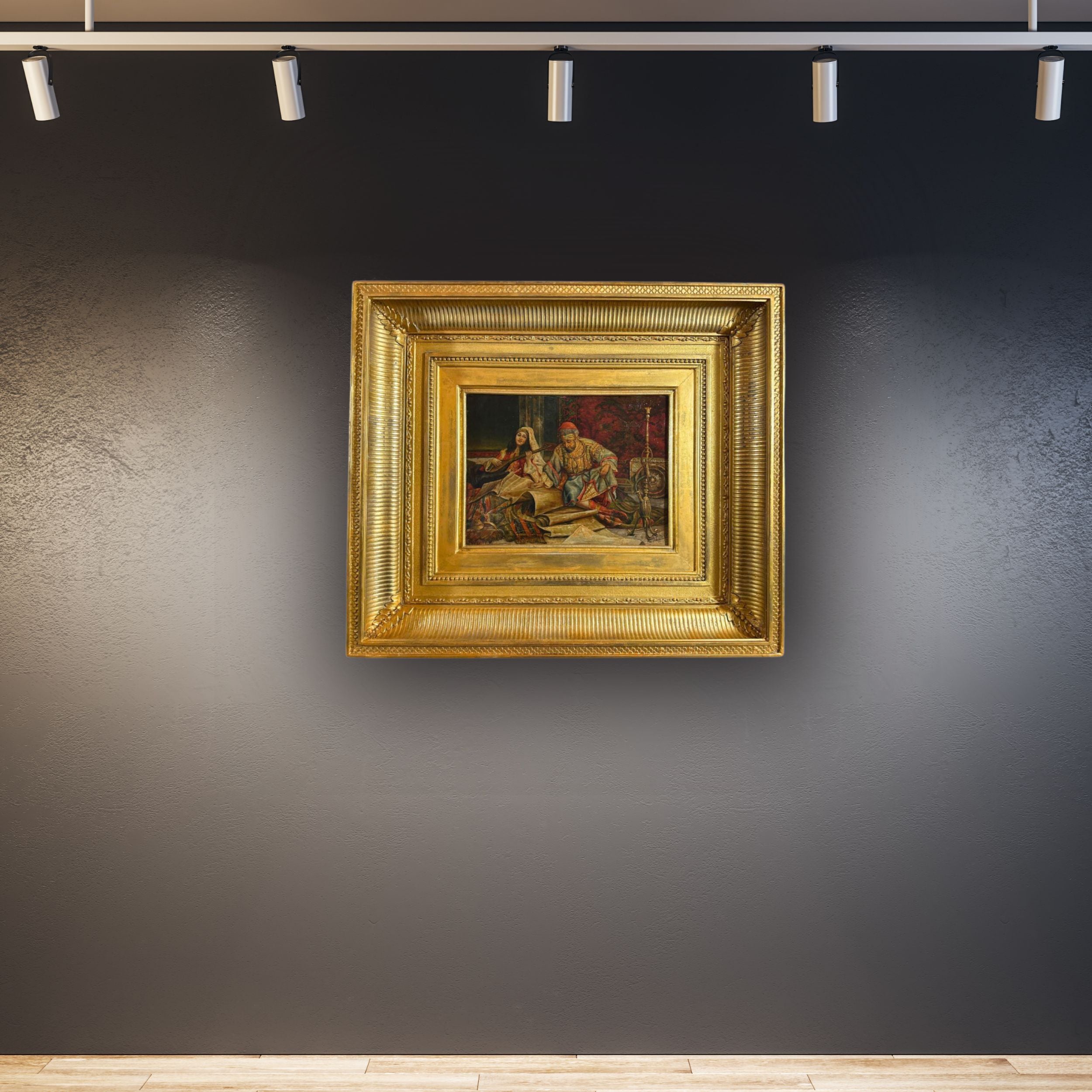 This painting exemplifies Fabres' dedication to portraying the daily life and cultural practices of the Middle East and North Africa, regions he visited and studied extensively. His meticulous attention to detail and commitment to authenticity are evident in the accurate representation of the instruments, clothing, and architectural elements. Music in the Palace reflects the 19th-century European fascination with the "exotic" East, a central theme of the Orientalist movement. By capturing such scenes, Fabres contributed to the Western audience's understanding and romanticized view of Eastern societies, blending artistic skill with cultural narrative. His works remain significant for their historical value and their role in the broader context of Orientalist art.
