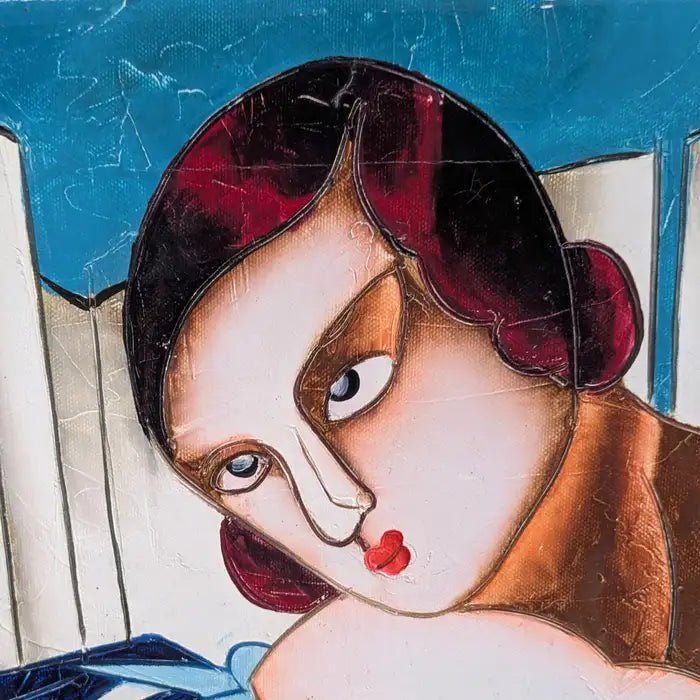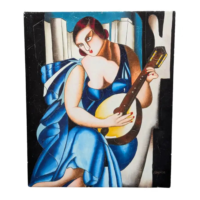 Oil on Canvas After Tamara's De Lempicka's Blue Woman with Guitar