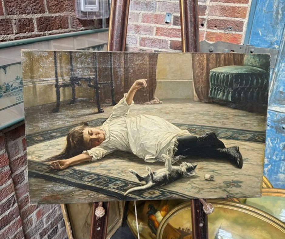 - Playful Moment – Girl and Kitten by Robert Koehler (Signed)