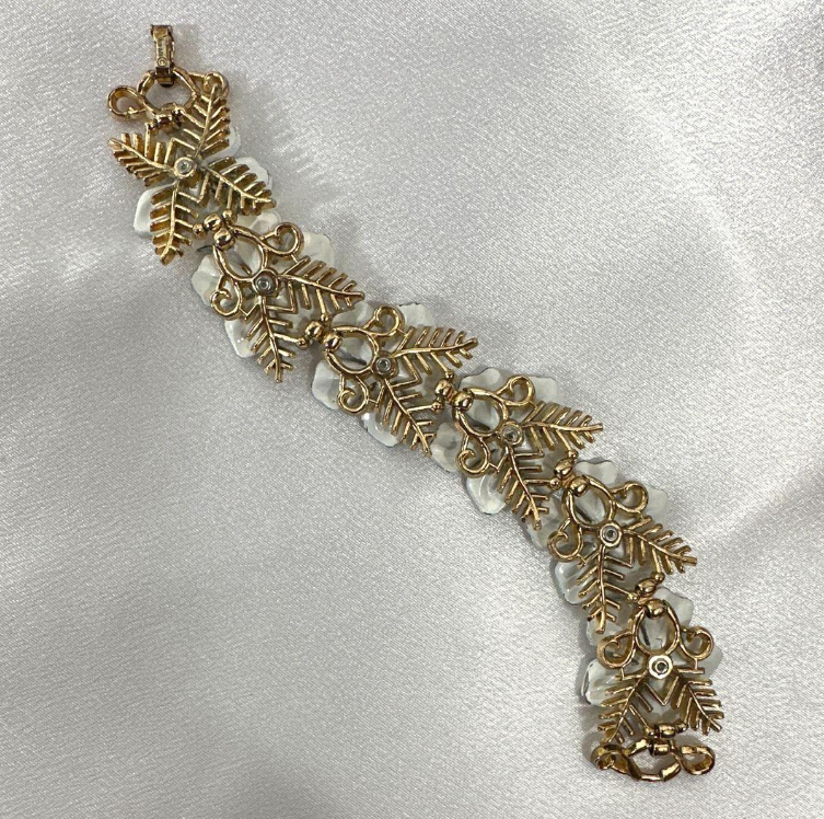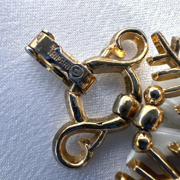 Founded in 1910, Trifari became a defining name in mid-century costume jewelry, blending Art Deco influences with Hollywood glamour. By the 1940s-1960s, Trifari’s designs—known for their intricate metalwork, high-quality rhinestones, and timeless elegance—were favored by celebrities and First Ladies alike. This piece embodies the refined craftsmanship and accessible luxury that made Trifari a household name.