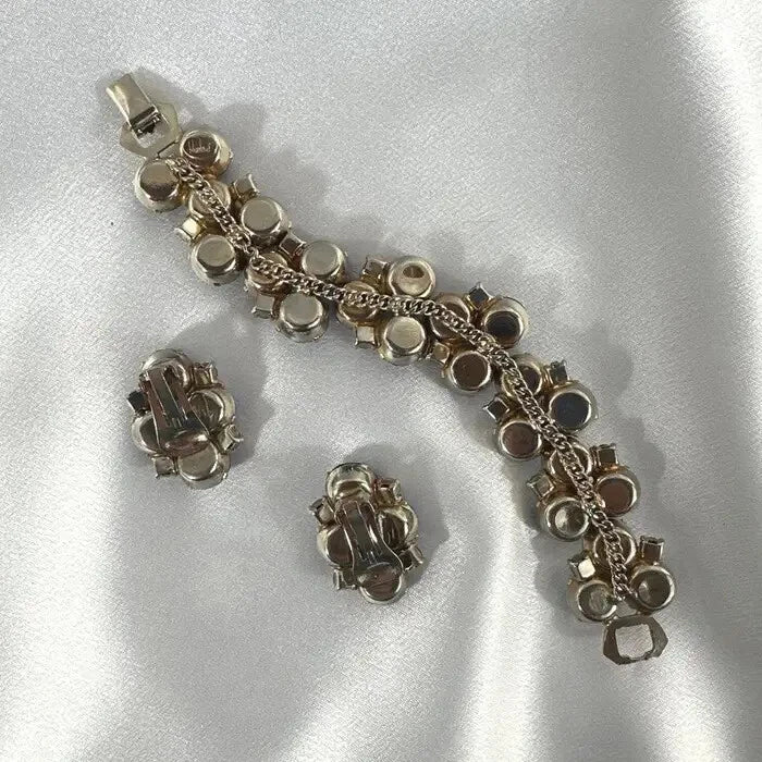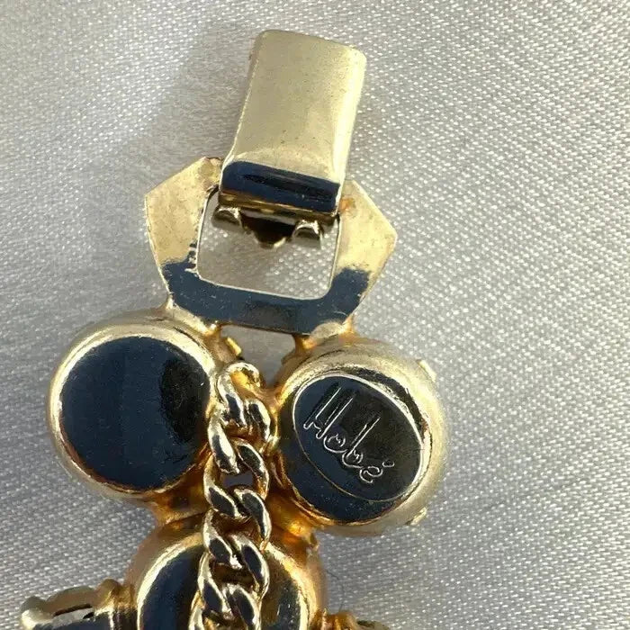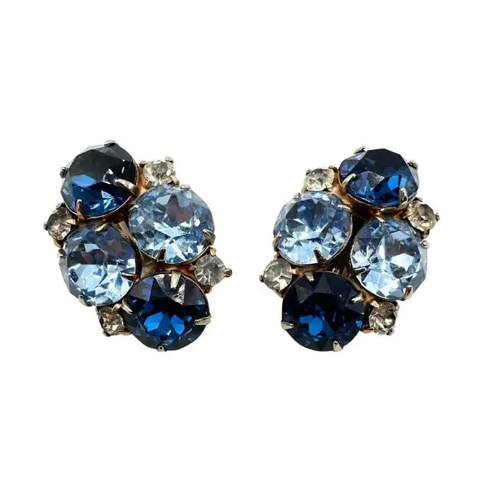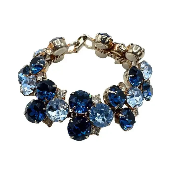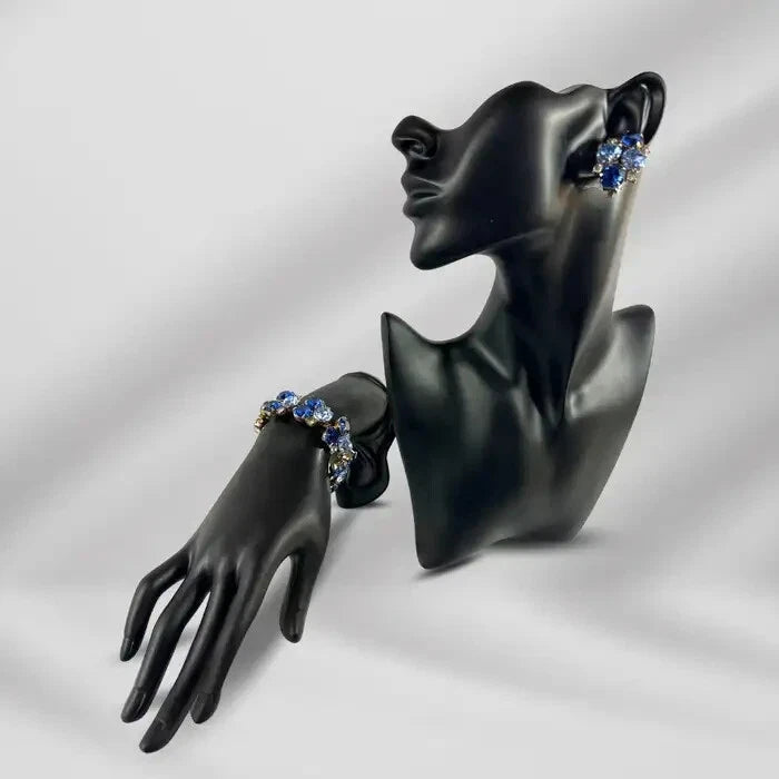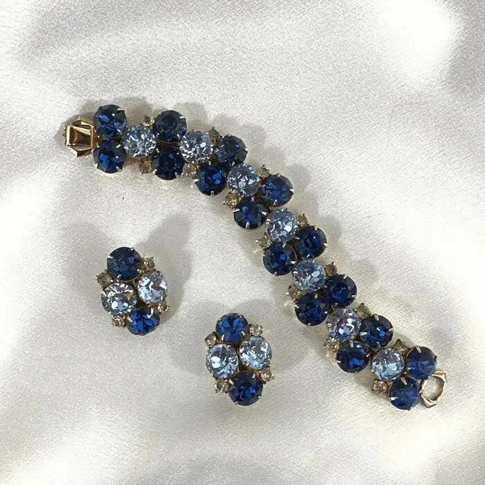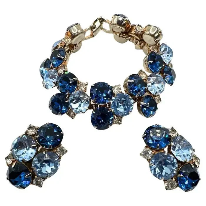 Signed Hobe Vintage Cobalt Blue and Light Blue Glass Bracelet and Earrings Set