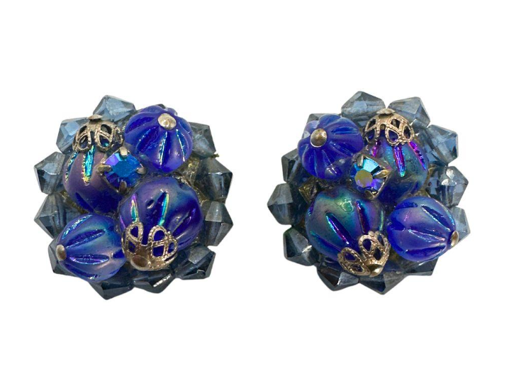 As a signed Kramer piece, this vintage set reflects the brand’s legacy of quality and craftsmanship. Embrace the allure of vintage fashion and let this Kramer Signed Shimmery Blue Borealis Glass and Rhinestone Vintage Necklace & Earrings Set be a delightful addition to your jewelry collection, adding a touch of glamour and sophistication to your style. Wear this set with confidence, knowing that you are adorned with a true vintage treasure that will captivate and enchant those around you.