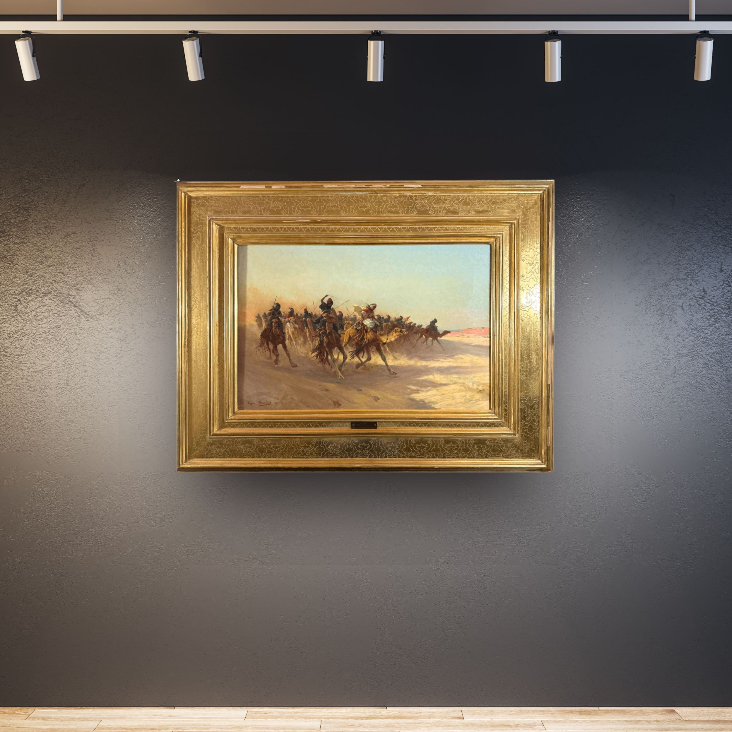 This painting exemplifies Girardet's dedication to depicting the life and landscapes of North Africa, a region he visited in the late 1800s. His works, including The Charge, are characterized by their realistic portrayal of Eastern subjects and settings, reflecting the Western fascination with the Orient during the 19th century. Girardet's ability to convey the energy and emotion of his subjects, combined with his technical skill, solidified his reputation within the Orientalist movement. The Charge stands as a testament to his artistic vision and his contribution to the genre, offering viewers a glimpse into the historical and cultural context of the time.