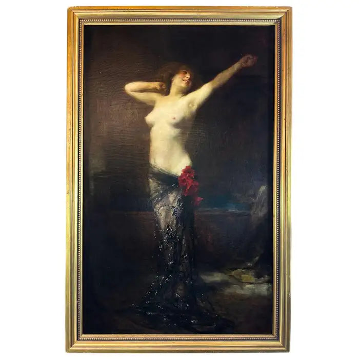 The Dance 19th-century Large Antique Nude Oil Painting on Canvas, Signed & Dated - Edouard Francois Zier
